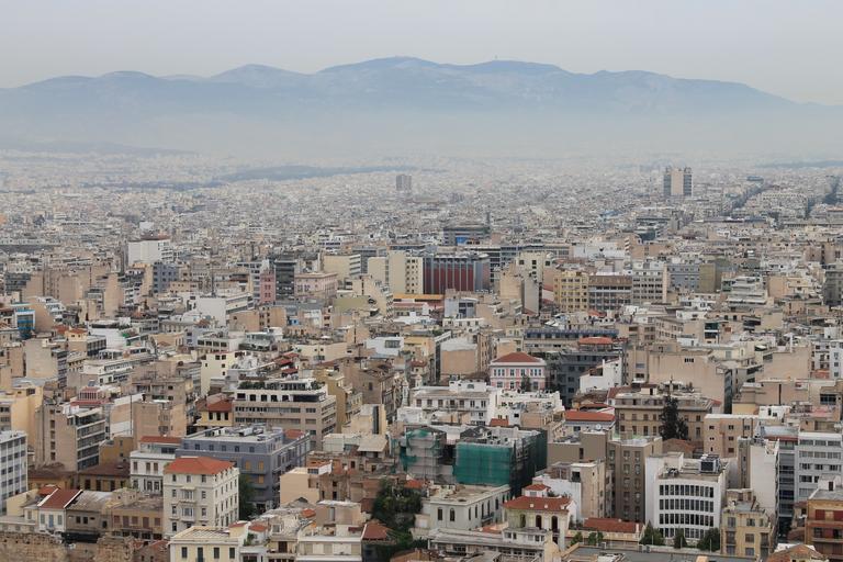 Keywords: athens greece acropolis greek old buildings houses pollution smoke mountains athena city scenery dust