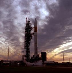 | Keywords: Atlas II with DSCS III B10.jpg en An Air Force Atlas II Rocket sits poised on Launch CX-36A at CCAFS ready to launch a Defense Satellite Communications System DSCS-III Spacecraft which is part of a larger constellation of military communications satellites 1993-11-28 http //www defense gov/multimedia/ U S DoD PD-USGov Uploaded with UploadWizard AC-106 |