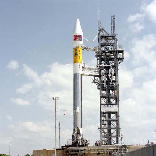 Keywords: Atlas II with UFO-8.jpg en A Lockheed Martin Atlas II stands ready to lift an ultra high frequency communications satellite for the U S Navy into orbit from complex 36A at Cape Canaveral 1998-03-16 http //www defense gov/multimedia/ U S DoD PD-USGov Uploaded with UploadWizard AC-132