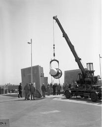 Keywords: blackandwhite monochrome outdoor black and white PictionID:46661086 - Catalog:14_021970 - Title:Re-entry Vehicle Details: Crane Lifting (RV)Re-entry Vehicle Off Trailer Date: 04/04/1962 - Filename:14_021970.tif - Images from the Convair/General Dynamics Astronautics Atlas Negative Collection. The processing, cataloging and digitization of these images has been made possible by a generous National Historical Publications and Records grant from the National Archives and Records Administration---Please Tag these images so that the information can be permanently stored with the digital file.---Repository: San Diego Air and Space Museum PictionID:46661086 - Catalog:14_021970 - Title:Re-entry Vehicle Details: Crane Lifting (RV)Re-entry Vehicle Off Trailer Date: 04/04/1962 - Filename:14_021970.tif - Images from the Convair/General Dynamics Astronautics Atlas Negative Collection. The processing, cataloging and digitization of these images has been made possible by a generous National Historical Publications and Records grant from the National Archives and Records Administration---Please Tag these images so that the information can be permanently stored with the digital file.---Repository: San Diego Air and Space Museum |