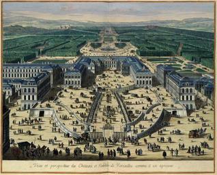 | Keywords: Atlas Van der Hagen-KW1049B12 023-Veue et perspective du Chateau et Jardin de Versailles, comme il est apresant.jpeg of the Atlas Van der Hagen in the catalogue of the KB http //opc4 kb nl/DB 1/TTL 1/LNG EN/PPN PPN 353012750 Willem_Swidde Author Willem_Swidde Publisher De Lespine Author Willem_Swidde Publisher De Lespine credit line 1683 Dit gezicht op het kasteel en de tuinen van Versailles werd vervaardigd door de graveur Willem_Swidde ca 1660-1697 Hoewel van hem ook enige portretten en historieprenten bekend zijn specialiseerde Swiddenzich vooral in landschappen en tuinprenten Voor de uitgever De Lespine verzorgde hij tussen 1683 en 1684 een aantal gezichten op de beroemde tuinen van Versailles Hij werd daarbij geinspireerd door een soortgelijke reeks prenten die in Parijs door de Franse graveur Nicolas Perelle waren verschenen This view on the castle and the gardens of Versailles was carried out by Willem_Swidde c 1660-1697 Though occasionally Swidden made portaits and historical prints as well he specialised in landscapes and garden prints Commissioned by De Lespine Swidden engraved a series of views of the famous gardens of Versailles between 1683 and 1684 A series of prints with the same subject published in Paris and engraved by Nicolas Perelle formed the source of inspiration for this series of prints 39 x 48 cm exhibition history Institution Koninklijke Bibliotheek kopergravure Technique copper engraving KW1049B12_023 - Volume 1 Willem_Swidde - Perelle Nicolas Information field Depicted locations Versailles - France object history object type Prent Print PD-old-100 place of creation Amsterdam place of discovery Source page at the http //resolver kb nl/resolve urn urn gvn KONB01 261 Geheugen van Nederland / Memory of the Netherlands website Koninklijke Bibliotheek Veue et perspective du Chateau et Jardin de Versailles comme il est apresant Uploaded with GWToolset Atlas Van der Hagen-KW1049B12_023-Veue et perspective du Chateau et Jardin de Versailles comme il est apresant http //resolver kb nl/resolve urn urn gvn KONB01 1049B12_023 size large Atlas van der Hagen |