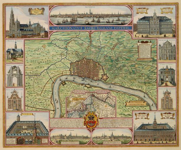 | Keywords: Atlas Van der Hagen-KW1049B11 060-MARCHIONATUS SACRI ROMANI IMPERII.jpeg of the Atlas Van der Hagen in the catalogue of the KB http //opc4 kb nl/DB 1/TTL 1/LNG EN/PPN PPN 353012750 Claes Jansz Visscher Author Claes Jansz Visscher Publisher Claes Jansz Visscher Author Claes Jansz Visscher Publisher Claes Jansz Visscher credit line 1624 Deze fraaie kaart toont de stad Antwerpen en het markgraafschap en tevens de belangrijkste gebouwen De kaart werd in 1624 gegraveerd en uitgegeven door Claes Jansz Visscher 1587-1652 in Amsterdam Hoewel de afbeelding van de voornaamste kerken en stadspoorten aan de kaart een toeristisch karakter suggereert werd de kaart waarschijnlijk gepubliceerd naar aanleiding van de vergeefse belegeringen van de stad aan de Schelde in 1620 en 1624 door Prins Maurits In zijn toelichting op het inzetkaartje waarin de loop van de Schelde wordt afgebeeld vestigt Visscher vooral de nadruk op de militaire versterkingen en de cruciale dijken rondom de stad De Schelde vormde bij belegeringen van de stad een cruciale schakel ; Op de kaart een stadsgezicht en een aantal inzetten met de belangrijkste gebouwen This particularly beautifully decorated map shows the city of Antwerp and surroundings and the most important buildings The map was engraved and published by Claes Jansz Visscher 1587-1652 in Amsterdam in 1624 Although the pictures of the churches and important monumental buildings suggest a touristic character the map was probable published after some sieges of the city by Prince Maurits at the river Schelde in 1620 en 1624 Text in the inset with the course of the river Schelde emphasizes the military fortifications and the crucial role of the dikes around the city The river Schelde appeared to be a strategic point when the city was besieged 45 8 x 55 8 cm exhibition history Institution Koninklijke Bibliotheek kopergravure Technique copper engraving KW1049B11_060 - Volume 1 Claes Jansz Visscher - Maurits prins van Oranje-Nassau Information field Depicted locations Antwerp - Belgium - Schelde river object history object type Prent Print PD-old-100 place of creation place of discovery Source page at the http //resolver kb nl/resolve urn urn gvn KONB01 179 Geheugen van Nederland / Memory of the Netherlands website Koninklijke Bibliotheek MARCHIONATUS SACRI ROMANI IMPERII Uploaded with GWToolset Atlas Van der Hagen-KW1049B11_060-MARCHIONATUS SACRI ROMANI IMPERII http //resolver kb nl/resolve urn urn gvn KONB01 1049B11_060 size large Atlas van der Hagen |