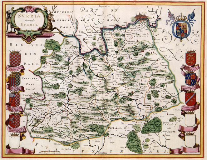 Keywords: Atlas Van der Hagen-KW1049B11 012-SURRIA Vernacule SURREY..jpeg of the Atlas Van der Hagen in the catalogue of the KB http //opc4 kb nl/DB 1/TTL 1/LNG EN/PPN PPN 353012750 Publisher Creator Jan_Janssonius Publisher Creator Jan_Janssonius credit line 1646 In 1645 bracht Joan Blaeu 1598-1673 met veel succes een atlas van Engeland op de markt Blaeu baseerde zich daarbij op het werk van zijn Engelse collega John Speed 1552-1629 die in 1611 zijn Theatre of the Empire of Great Britaine had uitgegeven Aangestoken door het grote succes liet de buurman van Blaeu de uitgever Jan Janssonius 1588-1664 de hele atlas kopieƫren In 1646 publiceerde hij het resultaat van die letterroof Deze kaart van Surrey komt uit de atlas van Janssonius In 1645 Joan Blaeu 1598-1673 successfully published an atlas of England Blaeu based this atlas on the Theatre of the Empire of Great Britaine published by his English colleague John Speed 1552-1629 in 1611 Infected by this success Blaeus neighbour Jan Janssonius 1588-1664 copied the complete atlas Janssonius published this pirate issue in 1646 This map of Surrey has been taken from Janssonius atlas The map is enriched with allegorical figures and attributes representing the economical and cultural character of the province 38 x 50 cm exhibition history Institution Koninklijke Bibliotheek kopergravure Technique copper engraving KW1049B11_012 - Volume 1 Jan Janssonius - Joan Blaeu - John Speed Information field Depicted locations England - Surrey object history object type Kaart Map PD-old-100 place of creation Amsterdam place of discovery Source page at the http //resolver kb nl/resolve urn urn gvn KONB01 125 Geheugen van Nederland / Memory of the Netherlands website Koninklijke Bibliotheek SURRIA Vernacule SURREY Uploaded with GWToolset Atlas Van der Hagen-KW1049B11_012-SURRIA Vernacule SURREY http //resolver kb nl/resolve urn urn gvn KONB01 1049B11_012 size large Atlas van der Hagen |