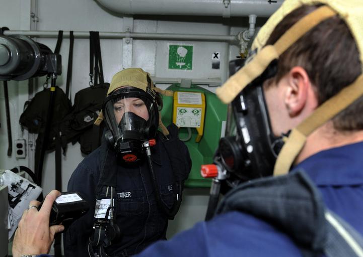 | Keywords: Atmosphere Readings DVIDS198471.jpg en Seaman Tara Steiner and Petty Officer 2nd Class Christopher Leddy flying squad rapid responders aboard the amphibious command ship USS Blue Ridge take atmosphere readings during a toxic gas drill 2009-08-25 Petty Officer 3rd Class Daniel Viramontes https //www dvidshub net/image/198471 090825-N-+++++-084 2009-08-25 19 28 BUSAN KR PD-USGov-Military-Navy USS Blue Ridge LCC-19 Images from DoD uploaded by Fæ | ||||