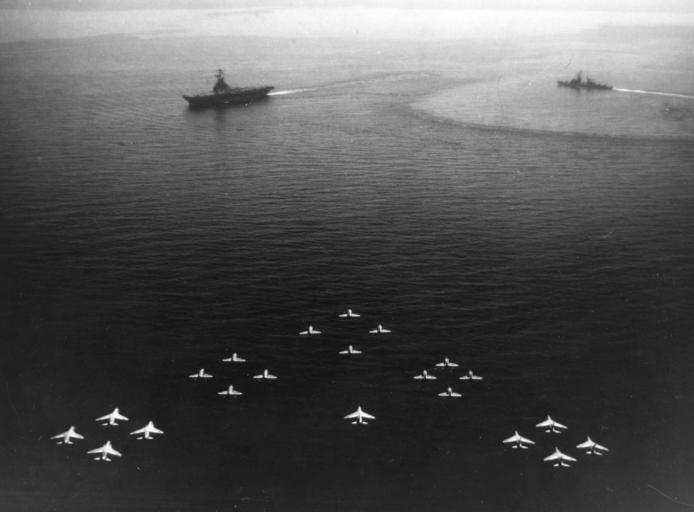 Keywords: Attack Carrier Air Wing 8 aircraft approach USS Shangri-La (CVA-38) in 1968.jpg A formation of eight Vought F-8C Crusaders one RF-8G four Douglas A-4B Skyhawks and eight A-4Cs from Attack Carrier Air Wing 8 CVW-8 approaches United States Navy surface units during a Mediterranean air show 1968 CVW-8 was assigned to the aircraft carrier USS Shangri-La CVA-38 visible in the background for a deployment to the Mediterranean Sea from 15 November 1967 to 4 August 1968 Official U S Navy photo http //www history navy mil/our-collections/photography/numerical-list-of-images/nhhc-series/nh-series/NH-71000/NH-71865 html NH 71865 from the U S Navy http //www history navy mil Naval History and Heritage Command 1968 U S Navy PD-USGov-Military-Navy F-8C Crusader A-4C Skyhawk United States Navy carrier air wings USS Shangri-La CV-38 |