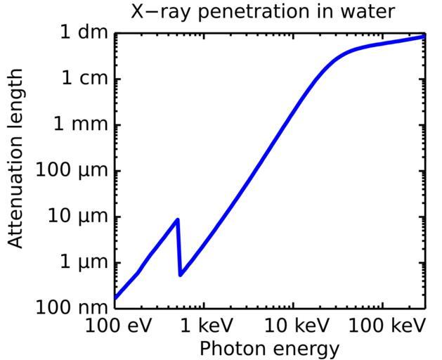 | Keywords: Attenuation.svg en The attenuation length of x-rays in water as function of photon energy 2012-11-07 16 46 52 own Ulflund Data for the soft X-ray part energies below 5 keV is taken from CXRO http //henke lbl gov/optical_constants/ Center for X-ray optics at Lawrence Berkeley National Laboratory Data for the hard X-ray part energies above 5 keV is taken NIST http //www nist gov/pml/data/xraycoef/index cfm National Institute of Standards and Technology cc-zero Uploaded with UploadWizard Radar principles X-rays |