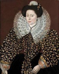| Keywords: Attributed to Sir William Segar Portrait of a Lady.jpg Portrait of a lady in a richly embroidered black dress Technique oil canvas cm 75 60 object history credit line accession number http //www sothebys com/en/auctions/ecatalogue/2003/elton-john-and-his-london-lifestyle-l03503/lot 45 html Sotheby's London sale L03503 3 Deptember 2003 lot 45 PD-old-100 William Segar 16th-century oil on canvas paintings Ruffs in art female Fans in art Lace collars in art Embroidered dresses in art Portrait paintings not categorised by year 16th-century paintings location missing |