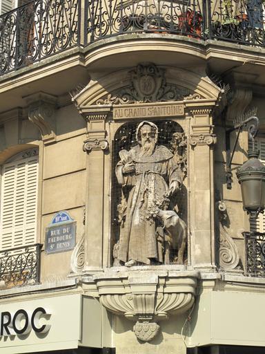 | Keywords: Au grand Saint-Antoine.jpg en Statue of Saint-Antoine very close to the porte Saint-Denis Paris 10th arr fr Statue de Saint-Antoine à proximité immédiate de la porte Saint-Denis Paris 10e arr <br/> Cette statue était l'enseigne du charcutier Vérot plus connu pour avoir créé le passage Vérot-Dodat car Saint-Antoine est le patron des charcutiers Le magasin a disparu mais l'enseigne est restée own Tangopaso 2009-07-01 48 52 11 71 N 2 21 10 07 E heading ENE Reliefs in Paris Rue du Faubourg-Saint-Denis Paris Niches in Paris Saint Anthony and the pig Bird nets for building protection Street signs in Paris 10e arrondissement Statues of Saint Anthony the Great in France |