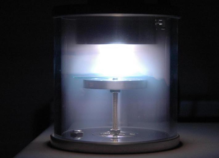 Keywords: Au sputtering light.JPG 電子顕微鏡試料 成用スパッタによる金の蒸 PVD ・スパッタ槽の直径は約150mm・ガスとして 常の大気を減 して使用 Plasma discharge visible inside a sputter chamber being used to deposit gold atoms onto an electron microscope sample by physical vapour deposition PVD The sputter chamber is 150 mm in diameter and the sputter gas consists of air at low pressure Own 2007-07-16 GcG jawp PD Semiconductor growth Sputtering |