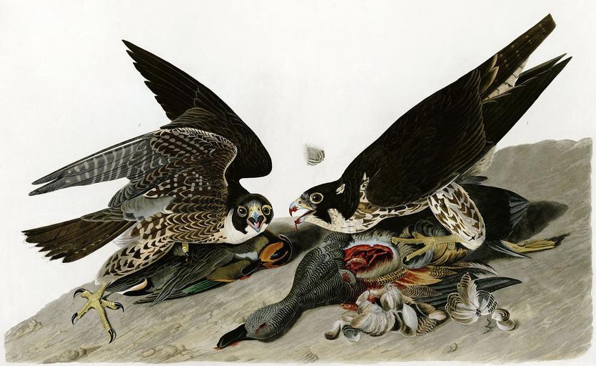 Keywords: Audubon-peregrinus.jpg en Peregrine Falcons drawn by John James Audubon for the book The Birds of America Birds of America 1827 1838 creator John James Audubon PD-old-100 The Birds of America Peregrine Falcons in art