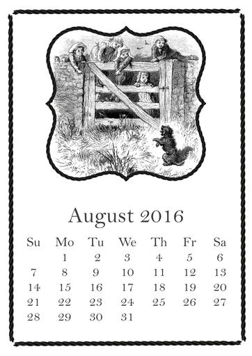Keywords: august 2016 calendar summer dog children fence vintage grass happy country date child girl boy border