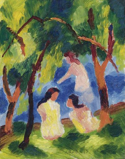 | Keywords: August Macke - Badende Mädchen (1913).jpg Artwork Creator August Macke Hilterfingen 1913 oil canvas board cm 24 19 accession number object history credit line exhibition history A Macke 13 ~ lower center signature / date http //www sothebys com/en/auctions/ecatalogue/2010/impressionist-modern-art-evening-sale-n08675/lot 19 html Sotheby's New York 2010 11 02 lot 19 PD-old-auto-1923 1914 DEFAULTSORT Macke - Badende Madchen Paintings by August Macke Group paintings of women bathing outdoors 1913 paintings Images from Sotheby's |