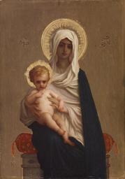 | Keywords: Auguste-Antoine-Ernest Hébert - Virgin of the Deliverance - Walters 375.jpg Hébert was yet another of the artists working in the orbit of Paul Delaroche whose name fell into relative obscurity in the last century He was in fact like Delaroche one of the most highly regarded and decorated painters of his generation winning medals at several Expositions Universelles World's Fairs He received the Grande Croix of the Legion of Honor in 1903 This is a variant based on a large-scale altarpiece that Hébert painted in time for the Salon of 1872 and that was finally installed in the church of his native town La Tronche the following year Unlike the original altarpiece which has a patterned background this version is stylized to recall the conventions of Byzantine icons The gold ground raised haloes and Greek letters-mu rho theta and upsilon the abbreviation of Maria Theotokos Mary God-bearer often found in Byzantine mosaics-lend the painting a schematic flatness that contrasts dramatically with the otherwise convincingly three-dimensional figures between 1872 1886 oil on panel gesso cm 40 3 28 3 accession number 37 5 31086 Collection of Mrs Mary J Morgan date and mode of acquisition unknown Mary J Morgan Sale New York March 3-5 1886 no 12 William T Walters city Baltimore Henry Walters city Baltimore Walters Art Museum Henry Walters Acquired by William T Walters 1886 Signature Lower left H place of origin France Walters Art Museum license 2D Ernest Hébert French paintings in the Walters Art Museum Media contributed by the Walters Art Museum needs category review 19th-century paintings of Madonna and Child Paintings not categorised by year 19th-century religious paintings in the United States |
