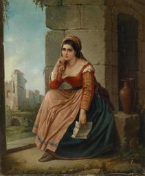 | Keywords: Augusto Tominz - The Letter, 1873.jpg  attributed to 1873 oil on canvas cm 62 52 object history exhibition history credit line signed bottom right TOMINZ 1873 accession number http //www dorotheum com Dorotheum PD-old-auto-1923 1883 Augusto Tominz Images from Dorotheum 1873 portrait paintings 1873 oil on canvas paintings 19th-century oil paintings of sitting women at full length Female with shoes Females looking at viewer in art Jugs in art Paintings with years of production artist Portraits with letters Waiting people on art |