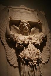 | Keywords: Augustus Saint-Gaudens, The Angel of Purity (Maria Mitchell Memorial) (1902, detail).jpg  Artwork Creator Augustus Saint-Gaudens A monument in remembrance of Maria Gouverneur Mitchell died 1898 aged 22 years commissioned by her parents Dr w Silas Weir Mitchell and Mary Cadwalader Mitchell for St Stephen's Episcopal Church Philadelphia where their daughter taught children's classes Saint-Gaudens based the sculpture on an earlier bronze figure Amor Caritas which he had created for the Musée d'Orsay Paris; another version of this is in the Cleveland Museum of Art The features of the angel were modelled after those of his mistress Davida Clark 1902 marble in 96 48 12 Institution Philadelphia Museum of Art Pennsylvania Philadelphia United States accession number 2005-2-1 object history 2005 Acquired using the Annenberg Fund for Major Acquisitions gifts from Mr and Mrs Wharton Sinkler and Mrs T Charlton Henry by exchange and funds contributed by the Margaret Dorrance Strawbridge Foundation of Pennsylvania II Inc credit line top BLESSED ARE THE / PURE IN HEART FOR / THEY SHALL SEE GOD ; bottom IN MEMORY OF / MARIA GOUVERNEUR MITCHELL / BORN MARCH XXI MDCCCLXXVI March 21 1876 / DIED JANUARY XXIV MDCCCXCVIII January 24 1898 http //www philamuseum org/collections/permanent/290521 html mulR 9700 1 Own ; photographed by Smuconlaw on 2012 05 03 15 15 other versions 100x100px Augustus Saint-Gaudens The Angel of Purity Maria Mitchell Memorial 1902 jpg PD-old-100 cc-by-sa-3 0 GFDL The Angel of Purity Maria Mitchell Memorial 1902 by Augustus Saint-Gaudens |
