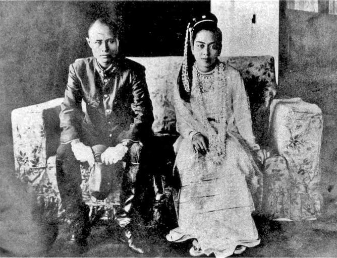| Keywords: Aung San and Khin Kyi wedding.jpg en Aung San and Khin Kyi's wedding September 1942 http //archive org/stream/freedomfromfearo00aung Freedom from Fear author Public domain Custom license marker 2012 04 18 PD-Myanmar Uploaded with UploadWizard Aung San Khin Kyi 1942 weddings Wedding ceremonies in Myanmar |