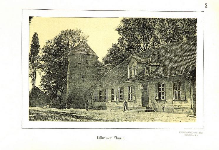 | Keywords: Aus Hannovers Vorzeit. Ein Beitrag zur deutschen Cultur-Geschichte ... Mit 23 photolithographischen Abbildungen, etc., 002 Döhrener Thurm (Döhrener Turm, Fotografie um 1883 und früher).jpg Fotolithografischer Druck einer 1883 oder früher aufgenommen Fotografie der Kaffeewirtschaft Döhrener Turm Das Bild Foto eines noch unidentifizierten Fotografen mit der Seiten - Nummer 2 entstammt dem von Historiker August Jugler 1833-1888 herausgegebenen Buch Aus Hannovers Vorzeit Ein Beitrag zur deutschen Cultur-Geschichte Mit 23 photolithographischen Abbildungen etc und wurde ursprünglich 1883 von der Aubeldruck-Anstalt Aubel Kaiser Lindenhöhe 38 b bei Cöln gedruckt Das hier zu sehende Digitalisat wurde im Rahmen einer umfangreicheren Aktion der British Library auf der Plattform Flickr hochgeladen anstatt direkt hier bei Commons von dort in höchstmöglicher Größe heruntergeladen dann mit einem Foto-Bearbeitungsprogramm per Autokontrast abgedunkelt und endlich hier hochgeladen Der Begleittext aus dem Buch fehlt noch - und enthält möglicherweise den Hinweis auf den ursprünglichen Fotografen und das genaue Entstehungsdatum des Fotos Sicher ist auch ein besserer Scan möglich und - langfristig gedacht - finden wir möglicherweise das originale Foto für ein bestmögliches Digitalisat http //www flickr com/photos/britishlibrary/tags/sysnum001910891 ~ 1883 unidentified photgrapher; reprint by Aubeldruck-Anstalt Aubel Kaiser Lindenhöhe 38 b bei Cöln PD-old Aus Hannovers Vorzeit Ein Beitrag zur deutschen Cultur-Geschichte Mit 23 photolithographischen Abbildungen etc von August Jugler Images from the British Library Mechanical Curator collection Döhrener Turm Hannover Unidentified photographers in Hannover |