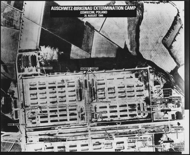 | Keywords: Auschwitz-Birkenau Extermination Camp - Oswiecim, Poland - NARA - 305901.tif Scope and content General notes 305901 Local identifier 263-AUSCHWITZ-19 08 National Security Council Central Intelligence Agency Directorate of Intelligence National Photographic Interpretation Center 1961 - 1973 Cartographic and Architectural Records Section Special Media Archives Services Division NWCS-C National Archives at College Park 8601 Adelphi Road College Park MD 20740-6001 1944-08-25 Record group Record Group 263 Records of the Central Intelligence Agency 1894 - 2002 Record group ARC 590 Aerial Photography of Auschwitz Concentration Camp compiled 1973 - 1973 documenting the period 1944 - 1945 Series ARC 305893 File unit File unit ARC Variant control numbers NAIL Control Number NWDNC-263-AUSCHWITZ-19 08 yes Other versions <gallery> File Auschwitz-Birkenau_Extermination_Camp_-_Oswiecim _Poland_-_NARA_-_305901 tif tif File Auschwitz-Birkenau_Extermination_Camp_-_Oswiecim _Poland_-_NARA_-_305901 jpg jpg </gallery> NARA-cooperation PD-USGov NARA TIF images with categorized JPGs Auschwitz aerial photographs |