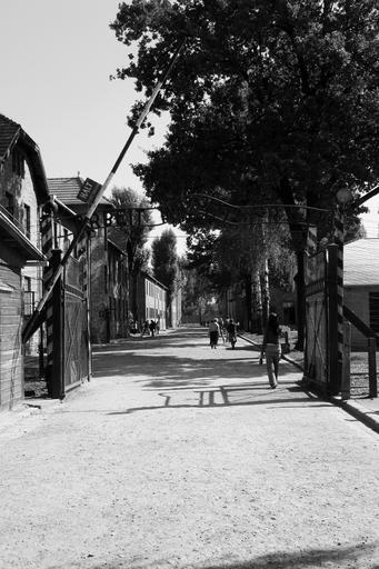 Keywords: auschwitz entry gate barrier oswiecim barracks holocaust poland