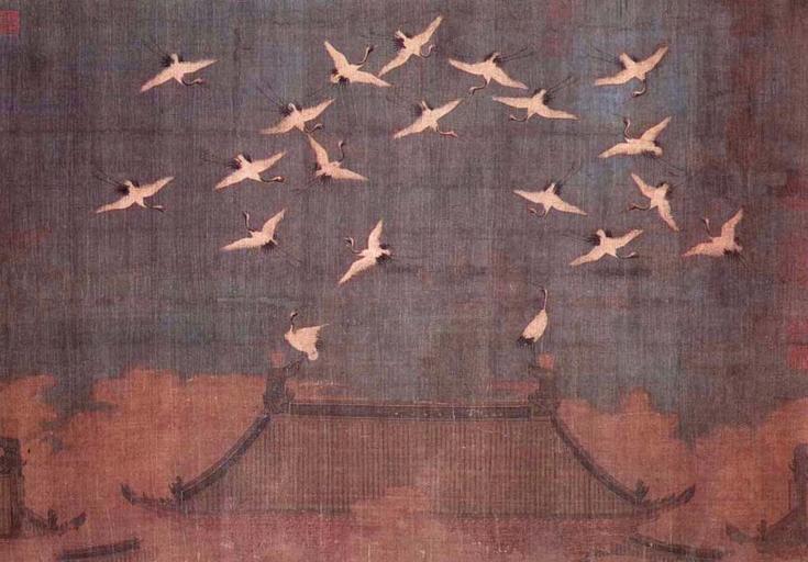 Keywords: Auspicious Cranes.jpg Artwork creator Zhao Ji 瑞鶴 Auspicious Cranes 1112 handscroll <br /> ink color silk museum Liaoning Provincial Museum it is written that a flock of cranes hovered around and perched on one of the palace buildings To commemorate this auspicious omen Huizong composed a poem for the event This image appears on page 151 of Patricia Ebrey's Cambridge Illustrated History of China Also see R M Barnhart's Three Thousand Years of Chinese Painting page 123 www epochtimes com/b5/5/8/17/n1021150 htm PD-old-100 100px Architecture in art 12th-century paintings Cranes in art Paintings of the Song Dynasty Zhao Ji Liaoning Provincial Museum |