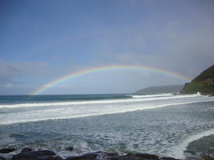 Keywords: australia rainbow great ocean road ocean sea beach seascape sky water wave coast coastal marine coastline scenic outdoor nature environment seaside