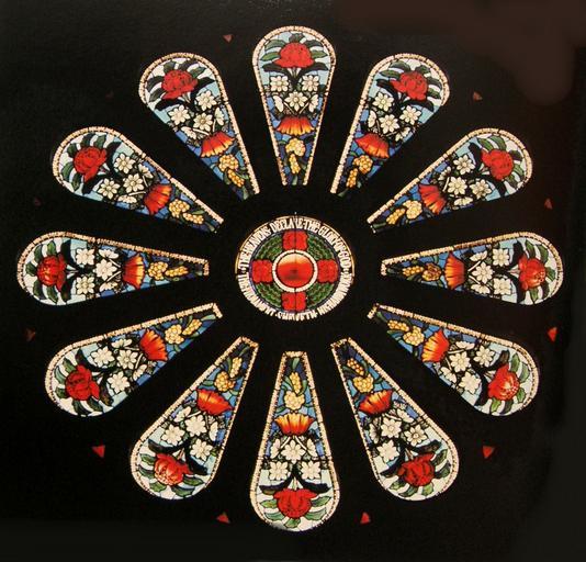 | Keywords: Australia Sydney AlfredHandel WaratahWindow.JPG Sydney St Bede's Church Drummoyne The Waratah window by Alfred Handel depicts Australian native flowers the red Waratah emblem of the state of New South Wales; Flannel Flowers Christmas Bells and Wattle Acacia The inscription reads The heavens declare the glory of God The firmament showeth his handiwork The window was designed in 1932 http //eprints utas edu au/7081/31/Ausglass_Spring_Summer_1991-1992 pdf own early 20th century Photograph TTaylor Artistic work Alfred Handel d 1946http //www smh com au/national/obituaries/a-master-artist-of-stained-glass-20090807-ecus html PD-Australia Stained glass windows in Australia Rose windows in Australia Drummoyne New South Wales Anglican churches in Sydney Telopea speciosissima Rose windows interior view 1932 stained glass windows |