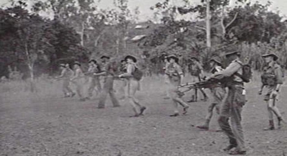 Keywords: Australian Bren gun training, June 1943, New Guinea.jpg en DONADABU SOGERI VALLEY NEW GUINEA 1943-06-28 BREN GUNNERS OF A COMPANY 9TH AUSTRALIAN INFANTRY BATTALION FIRING FROM THE HIP WHILE ADVANCING ON THE TARGET DURING A PRACTICE SHOOT Australian War Memorial copyright expired public domain Image 053387 1943-06-28 http //cas awm gov au/item/053387 Photographer Robert John Buchanan cc-zero Uploaded with UploadWizard Shooting World War II military training Weapon training World War II forces of Australia in New Guinea Bren light machine guns 1943 in New Guinea |