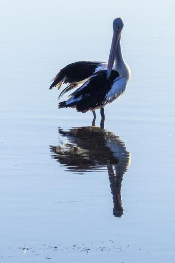 Keywords: australian pelican water bird nature animal wild pelecanus coast beach coastal native wildlife pelecanidae pelicanus conspicillatus reflection water ocean