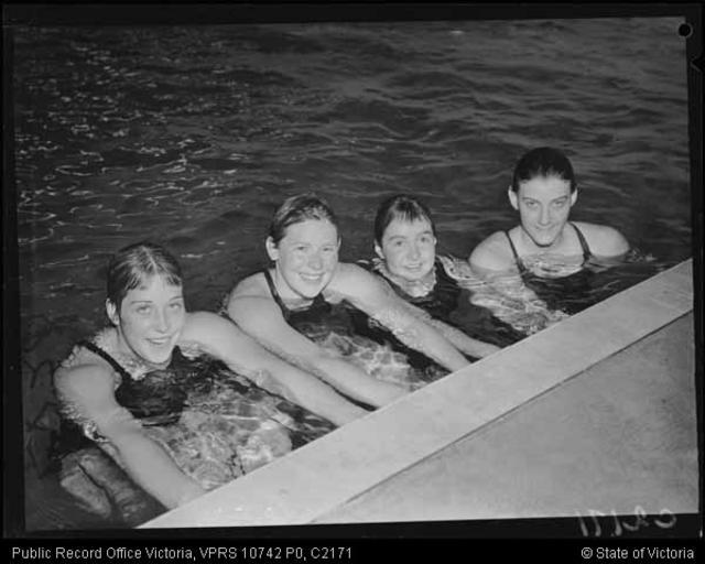 | Keywords: Australian team in Heat 2-S. Morgan, M. Gibson, E. Fraser, F. Leech- 4 x 100 Metre Relay.jpg en 1956 Summer Olympics Melbourne Victoria Australian 4 x 100 Metre Relay team winners in Heat 2-S Left to Right Sandra Morgan Margaret Gibson Elizabeth Fraser Faith Leech 1956-12-04 http //wiki prov vic gov au/index php/Swimming_4_X_100M_Relay_1956-12-04 Public Record Office of Victoria XVL Olympic Organising Committee See http //www access prov vic gov au/public/custom/jsp/daPublicBaseContainer jsp Custom license marker 2012 04 21 PD-Australia Uploaded with UploadWizard Swimming at the 1956 Summer Olympics Faith Leech Sandra Morgan |