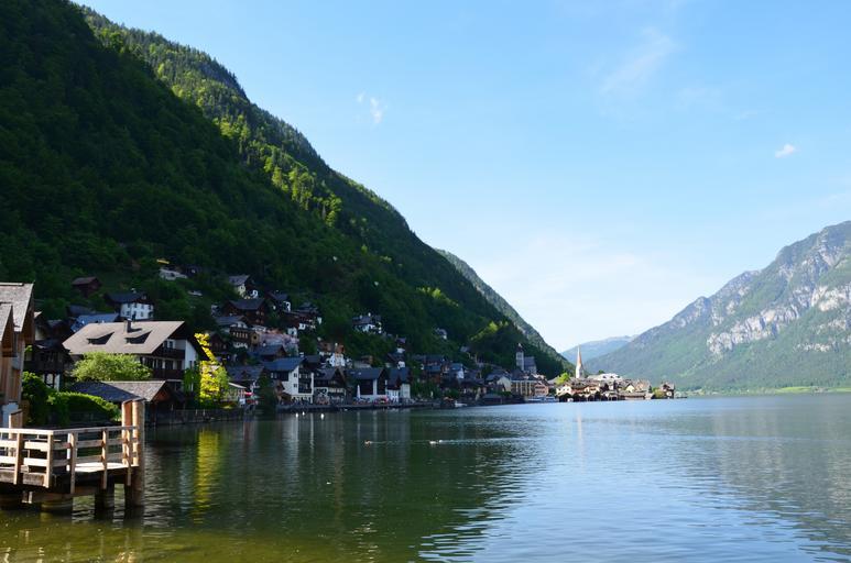 Keywords: austria hallstatt may 2015 water river lake mountains green forest village city summer holiday