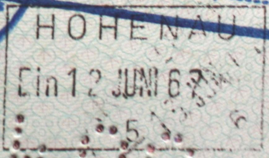 Keywords: Austria hohenau 1967 entry.JPG en Pre-schengen passport entry stamp from Hohenau Austria Border with Czechoslovakia krokodyl krokodyl 2010-07-25 Permission to upload image granted by author Passport stamps of Austria