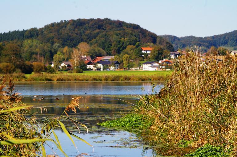 Keywords: austria mountains sky clouds fall autumn foliage colors colorful lake river water reflections plants grass village town shoreline nature outside country countryside rural