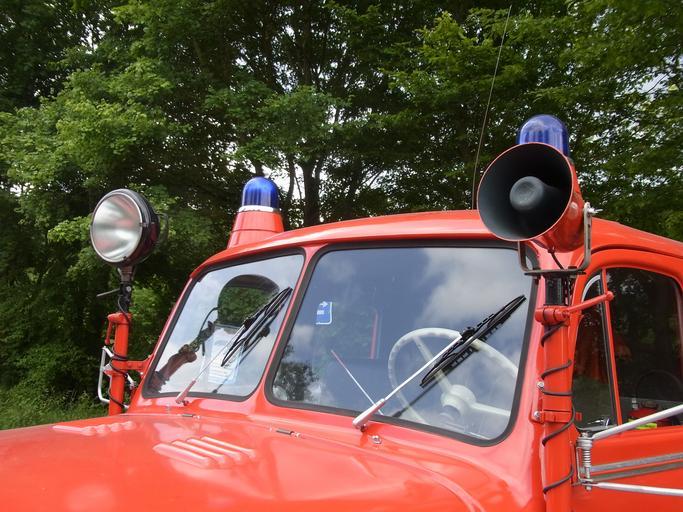 Keywords: auto oldtimer fire red horn signal blue light spotlight fire truck