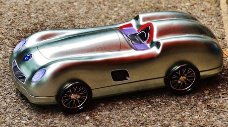 Keywords: auto silver sheet box racing car storage cookie jar tin can