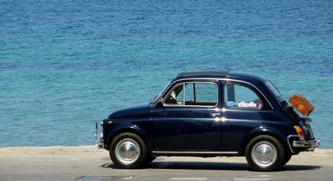 Keywords: auto vehicle vehicles fiat 500 cinquecento pkw classic park historically automobile car age blue sea old old car nostalgic italy
