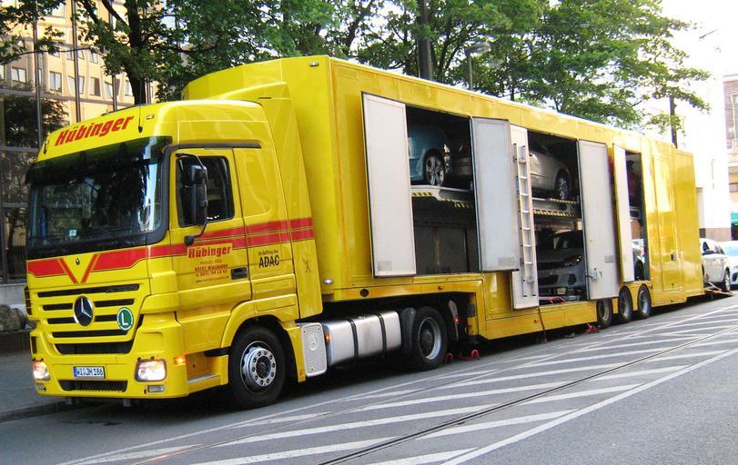 Keywords: Autotransporter.JPG de Autotransporter - Auflieger mit Mercedes-Benz LKW 2009 in Berlin selbst selbst 2009-08-27 Enclosed multi-deck car transporter trucks Mercedes-Benz Actros first generation Yellow trucks Semi-trailer trucks