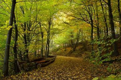 Keywords: autumn autumn forest forest deciduous trees trees fall foliage golden autumn fall leaves golden october emerge leaves sunbeam forest path fall color