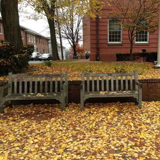 Keywords: autumn bench fall leaves yellow natural foliage tree landscape