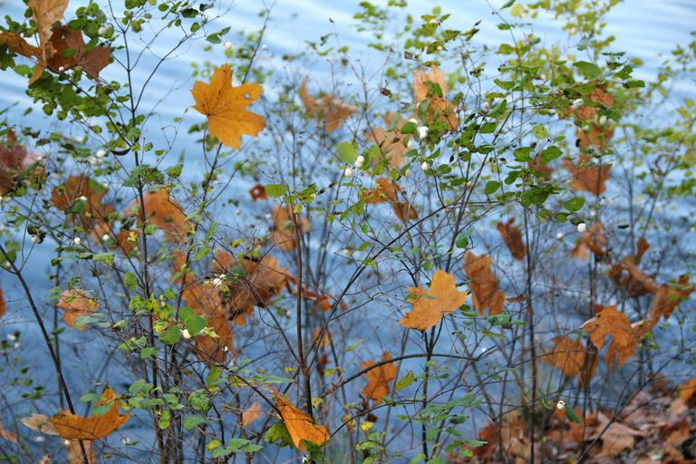 Keywords: autumn bush leaves water