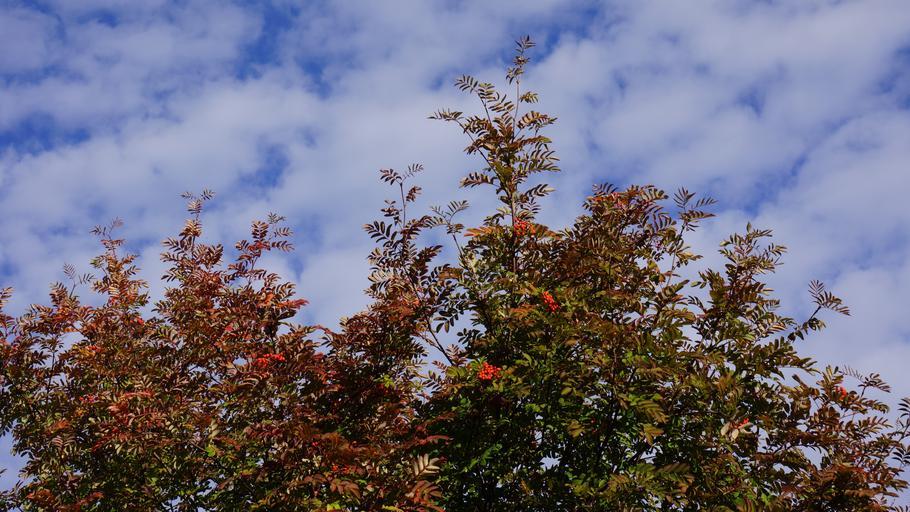 Keywords: autumn fall colors rowan blue sky white clouds