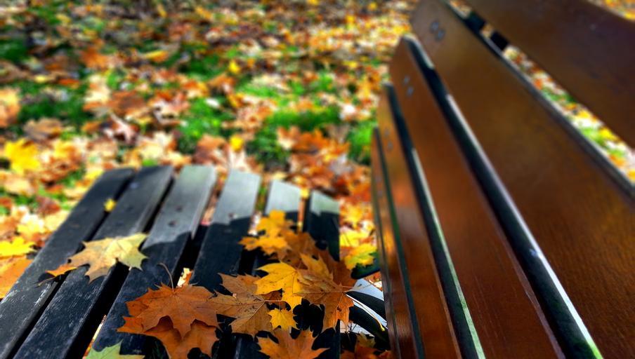 Keywords: autumn foliage autumn foliage yellow leaves horse chestnut park bench autumn gold october