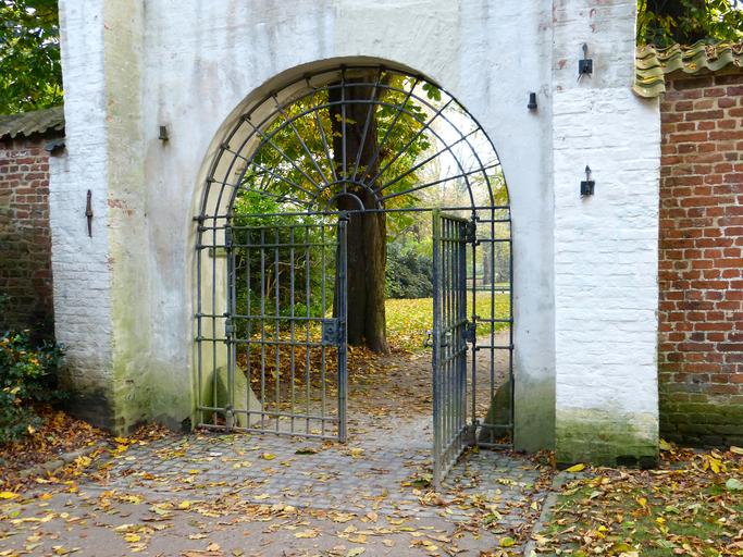 Keywords: autumn goal castle park husum leaves input portal historically architecture building wall wrought iron forged gate