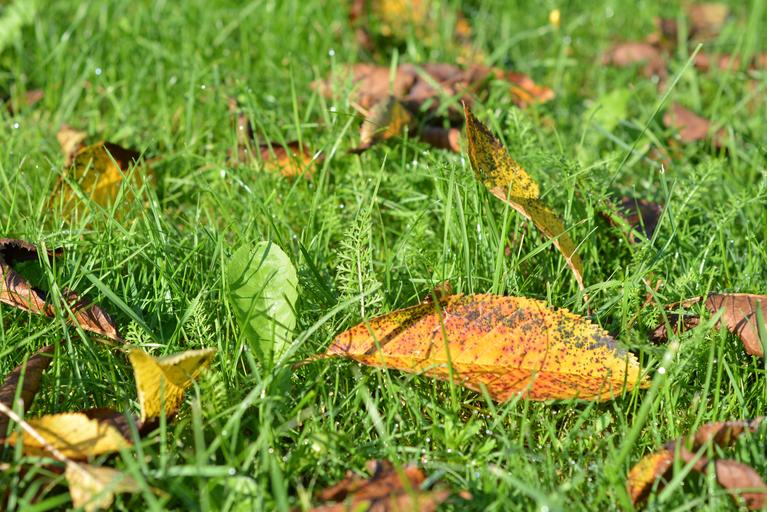 Keywords: autumn gold foliage yellow leaves autumn gold falling leaves lawn