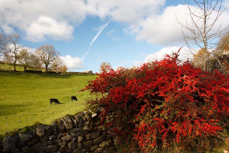 Keywords: autumn beautiful cloud colorful colors fall flora green landscape natural nature red berries scenery season sky bush trees vibrant