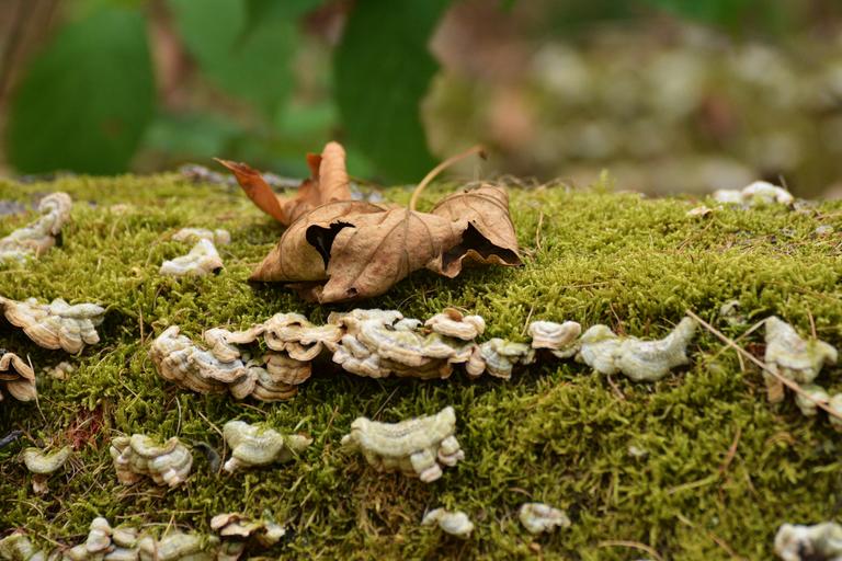 Keywords: autumn leaf autumn tree fungi mushrooms autumn forest moss overgrown fall foliage autumn mood