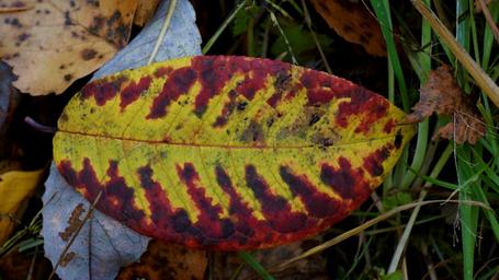 Keywords: autumn leaf colorful dropped on the ground stalks of the leaves chlorophyll