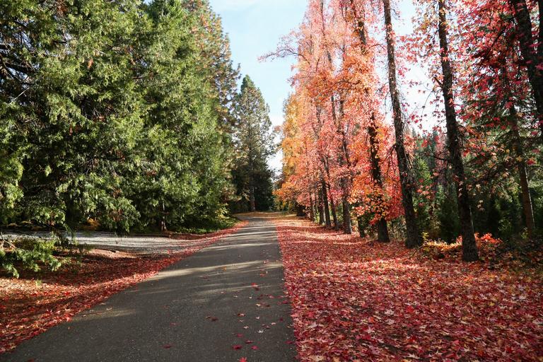 Keywords: autumn leaves street trees orange fall nature leaf red yellow season road park urban outdoor foliage seasonal color asphalt natural plant scene way