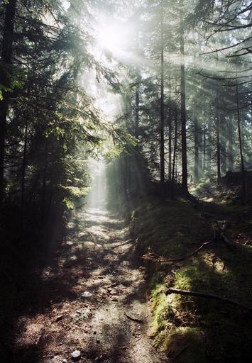 Keywords: autumn sun forest leaves away trees nature morning rays mood romantic styria margit wallner
