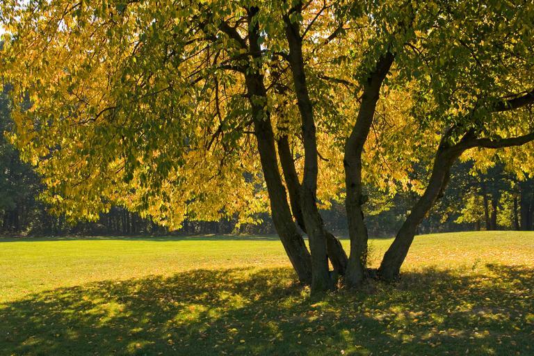 Keywords: autumn tree cherry colourful leaves fall garden nature season field sun meadow grass sunlight day