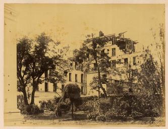 Keywords: Avenue de Neuilly WDL1327.png Artwork ru Б аквейе Б уно 1823 1875 гг fr Braquehais Bruno 1823-1875 en Braquehais Bruno 1823-1875 zh 布鲁诺·布拉奇海 ,1823-1875 年 pt Braquehais Bruno 1823-1875 ar براكهيه برونو، 1823-1875 es Braquehais Bruno 1823-1875 ru Авеню де ейи fr Avenue de Neuilly en Avenue de Neuilly zh 讷伊大道 pt Avenue de Neuilly ar جادة نويي ru П ичиной ф анко-п усской войны стал ост нап яженности в отношениях между Ф анцией и П уссией в 1860-х гг Ф анция п и импе ато е аполеоне III была полна ешимости п ове ить астущую силу П уссии и отомстить за то что она ассмат ивала как яд дипломатических унижений П уссия п и канцле е Отто фон Бисма ке считала что война ге манских госуда ств п отив Ф анции под уководством П уссии станет ешающим шагом к созданию единой Ге манской импе ии Конфликт начался 19 июля 1870 г когда Ф анция объявила войну Ф анцузская а мия оказалась ужасно неподготовленной и поте пела сок ушительное по ажение в битве п и Седане отк ыв до огу на Па иж К 19 сентяб я немцкие войска полностью ок ужили го од и начали осаду кото ая п одлилась более четы ех месяцев От езанные от поставок п одовольствия из сельской местности па ижане пытались выжить питаясь собаками кошками и даже животными из па ижского зоопа ка Де евья на Елисейских полях и в па ках были вы ублены и использованы в качестве топлива 5 янва я немецкие войска начали бомба ди овку го ода кото ая п одолжалась по несколько часов каждую ночь в течение 23 суток а ок естности Па ижа было сб ошено около 12 000 сна ядов кото ые убили около 400 человек Па иж сдался 28 янва я в сущности положив конец войне За по ажением ф анцузов последовало на одное восстание и установление в а те 1871г Па ижской коммуны еволюционного п авительства сфо ми ованного в соответствии с ана хистскими и социалистическими п инципами Коммуна была жестоко подавлена в мае 1871 г ф анцузскими войсками п авительства Адольфа Тье а Во в емя неп одолжительного конт оля над Па ижем коммуна ы аз ушали импе ато скую колонну на Вандомской площади Подавление коммуны п ивело к дальнейшим значительным аз ушениям в го оде когда коммуна ы подожгли дво ец Тюиль и Лув и д угие здания К оме того многие здания пост адали или были аз ушены во в емя отчаянной пе ест елки между коммуна ами и конт еволюционными силами Siege de Paris 1870 1871 Осада Па ижа 1870 1871 гг п едставляет собой альбом из 110 фотог афий сделанных Огюстом Б уно Б аквейе 1823 1875 гг ф анцузским фотог афом и п ог ессивным фотожу налистом документи овавшим осаду и последствия бомба ди овок а также аз ушения п оизошедшие во в емя Па ижской коммуны <br>Авеню де ейи Па иж Ф анция ; Ф анко-п усская война 1870 1871 гг ; Сады; Память ми а; Уще б нанесенный войной fr La guerre franco-allemande fut provoquée par l escalade des tensions entre la France et la Prusse dans les années 1860 La France sous l empereur Napoléon III était déterminée à contenir la croissance de la puissance prussienne et à venger ce qui était considéré comme une série d humiliations diplomatiques La Prusse sous le chancelier Otto von Bismarck considérait qu une guerre dirigée par la Prusse et menée par les États allemands contre la France serait un acte décisif menant à la création d un empire allemand unifié Le conflit débuta le 19 juillet 1870 jour où la France déclara la guerre L armée française s avéra terriblement mal préparée et subit une défaite désastreuse lors de la bataille de Sedan laissant la voie libre vers Paris Le 19 septembre les Allemands encerclèrent complètement la ville et commencèrent un siège qui allait durer plus de quatre mois Coupés du ravitaillement provenant de la campagne les Parisiens survécurent en mangeant les chiens les chats et même la plupart des animaux du zoo de Paris Les arbres des Champs-Élysées et des parcs furent coupés et brûlés pour servir de combustible Le 5 janvier les armées allemandes entreprirent le bombardement de la ville qui dura plusieurs heures chaque nuit durant 23 nuits Environ 12 000 obus tombèrent sur les quartiers de Paris tuant près de 400 personnes Paris capitula le 28 janvier mettan